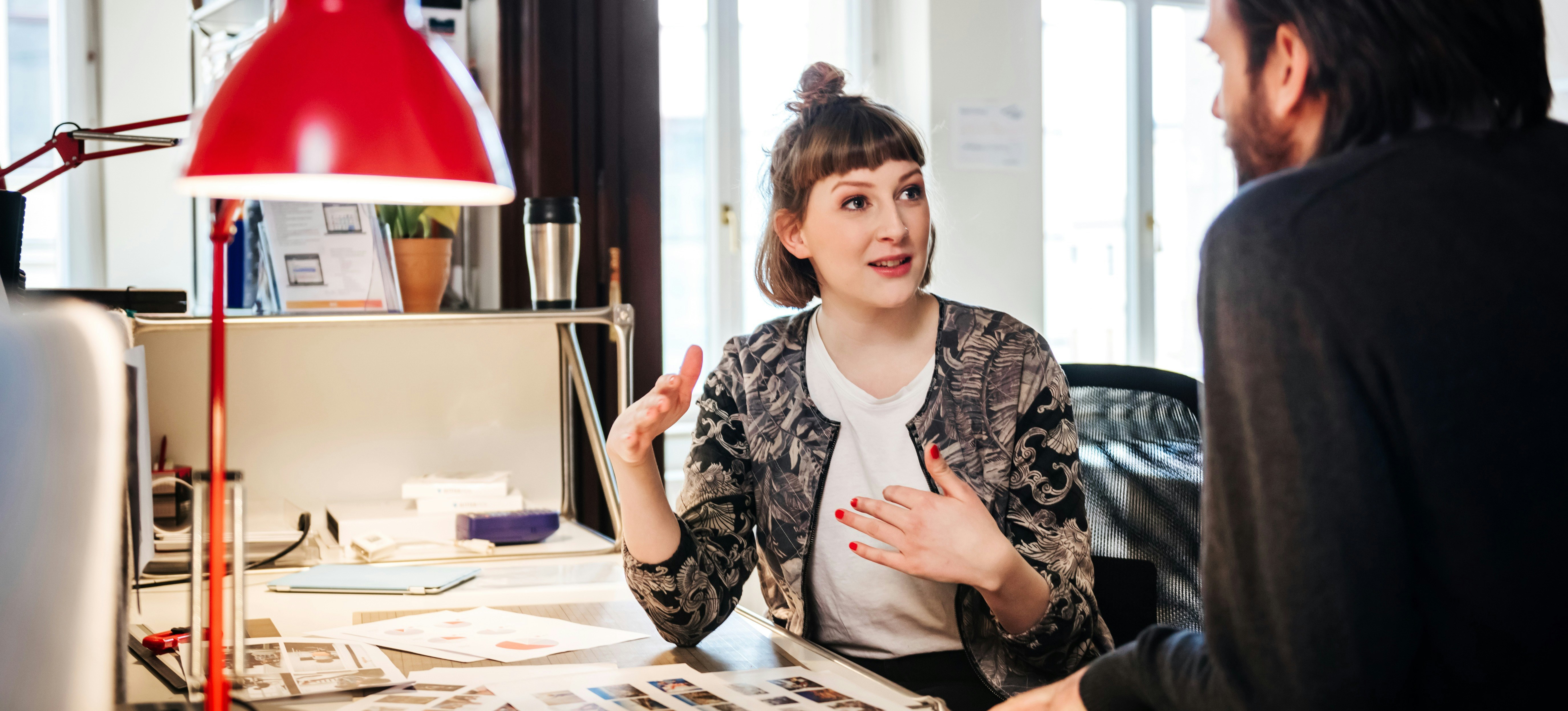 Meeting with employers or clients to discuss design needs