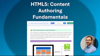 Skills you'll gain: Web Development Tools, Web Development, Hypertext Markup Language (HTML), HTML and CSS, Web Design and Development, Web Applications, Web Design, Web Servers, Development Environment, Apache, Software Development, Web Content, Front-End Web Development, Semantic Web, Information Architecture