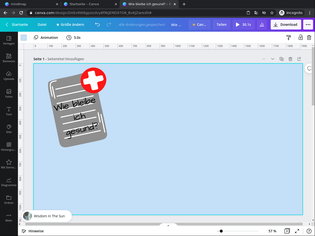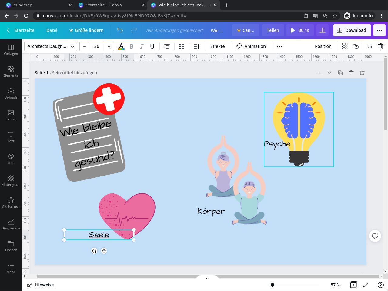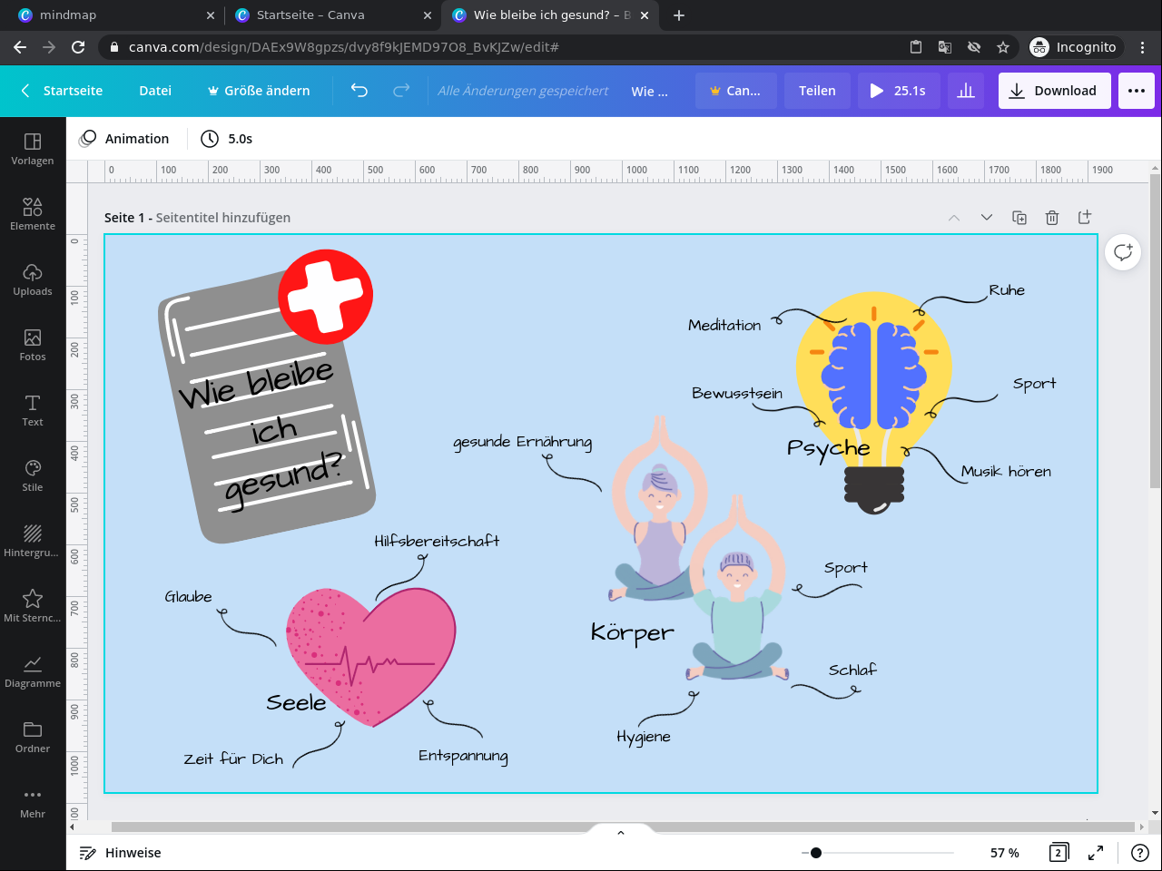 3. Wende Grafikdesign Elemente und Techniken in deiner Canva Mindmap an.